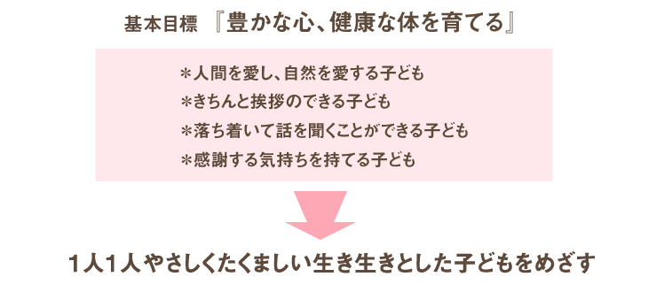 「子どもたちの健やかな成長とその家族の幸せを願い、更にそれを強めていくために地域の大きな木となることを目指していく」を園の基本理念とし、「信頼」「希望」「愛情」を教育保育の三つの柱としています。